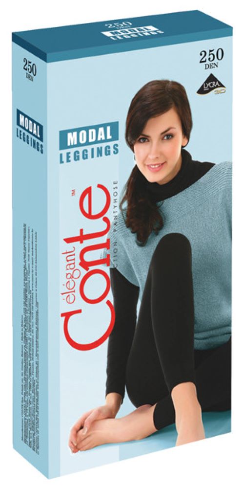 Conte Modal 250 Den leggings combine the softness and breathability of micromodal viscose with the stretch and durability of Lycra, creating a warm, thick, and opaque fabric ideal for cooler weather. The low-waist design with flat seams and a gusset ensures a comfortable fit without pressure points or irritation. The 3D construction provides a subtle shaping effect that gently contours the legs and hips for a flattering silhouette. These leggings are perfect for everyday wear, offering both comfort and light body modeling for a sleek, polished appearance.