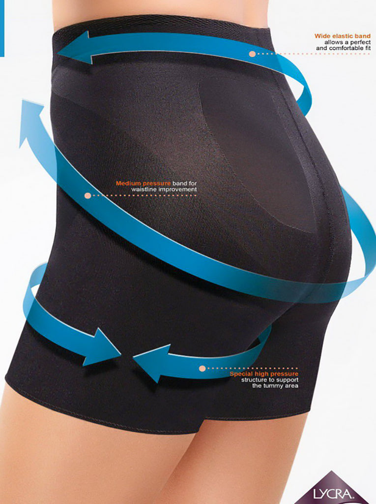 Well-designed seamless shaper to wear underneath your clothing. It offers great support and body control that enhances the look of any outfit. Easy care, easy to wash, dries quickly, will maintain shape and color. Spandex shorts with a flat seam, cotton gusset, and five modeling belts. Splendid modeling effect and distributed pressure. A wide elastic band at the top of the shorts allows for a perfect and comfortable fit on the belly area.