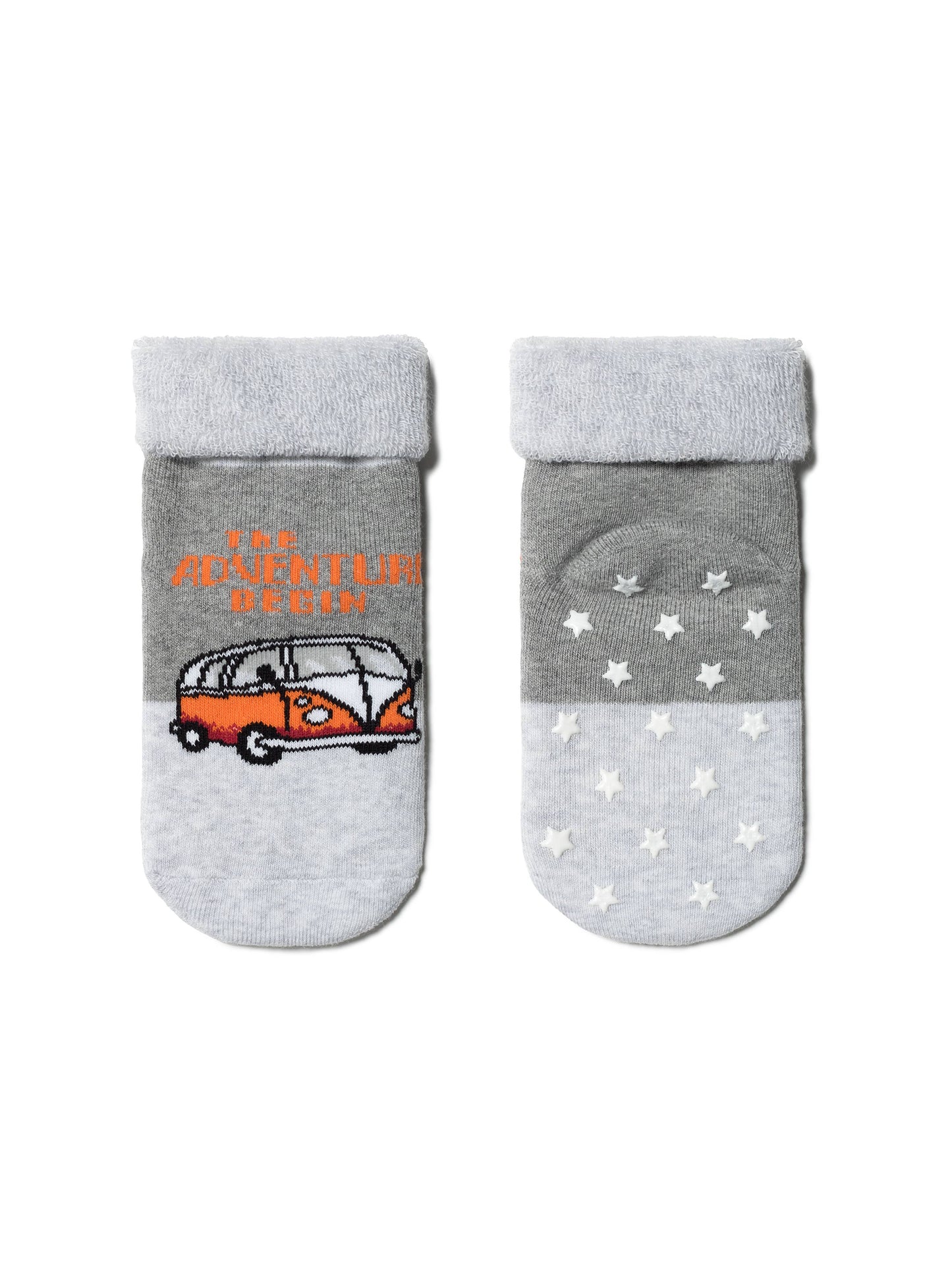 Conte-Kids Sof-tiki #7С-62СП(473) offers a set of two pairs of high-quality cotton terry socks designed specifically for boys. These socks provide excellent warmth and comfort, making them ideal for cooler days. Featuring a secure lapel to keep the socks comfortably in place and an anti-slip coating on the sole, they help prevent slips and falls during active play. Sized precisely according to foot length in centimeters, these socks ensure a proper fit for growing children. Durable and breathable, they combine practical functionality with soft, gentle fabric suitable for sensitive skin.