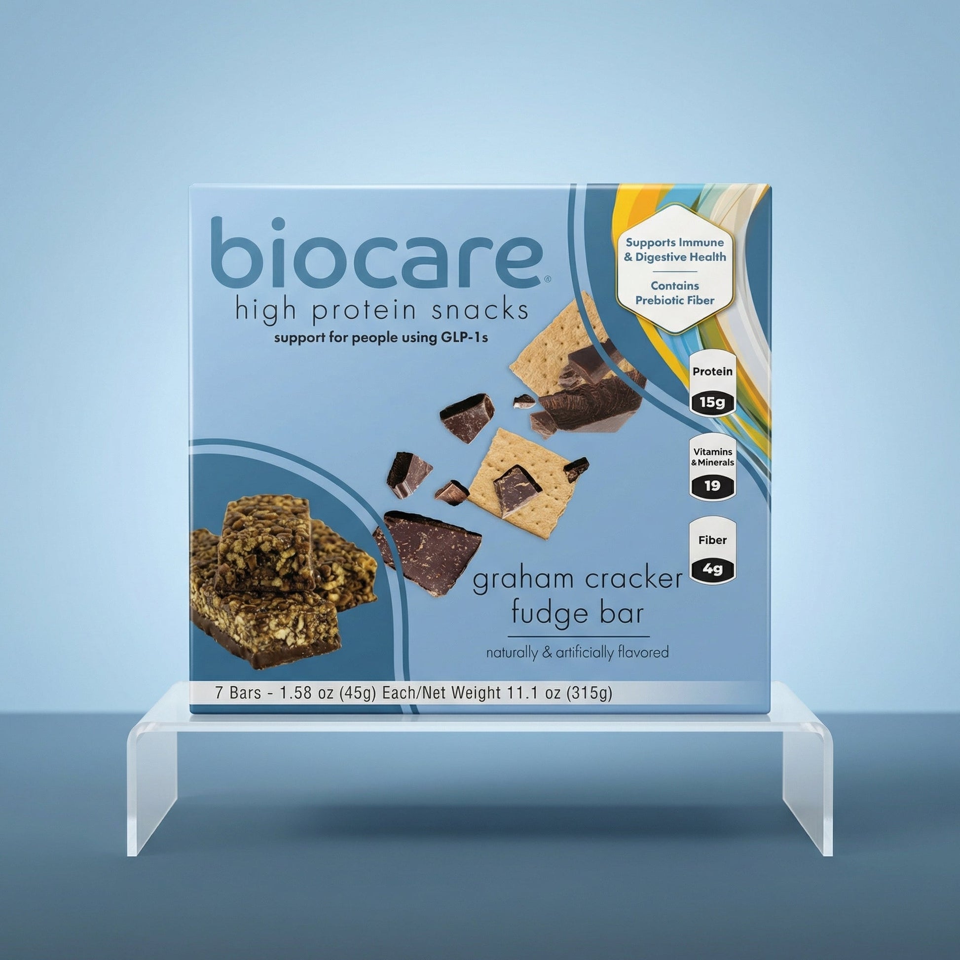 Satisfy your sweet tooth with the Biocare 15G Protein Graham Cracker Fudge Bar, a delicious, high-protein snack designed for individuals on GLP-1 medications like semaglutide. Each bar delivers 15 grams of high-quality protein and essential nutrients to help support weight management, muscle maintenance and overall wellness. With the crunch of graham cracker and the richness of fudge, this convenient, guilt-free treat helps curb cravings and keep you on track. Enjoy a nutritious snack that tastes as good as it makes you feel — try one today!