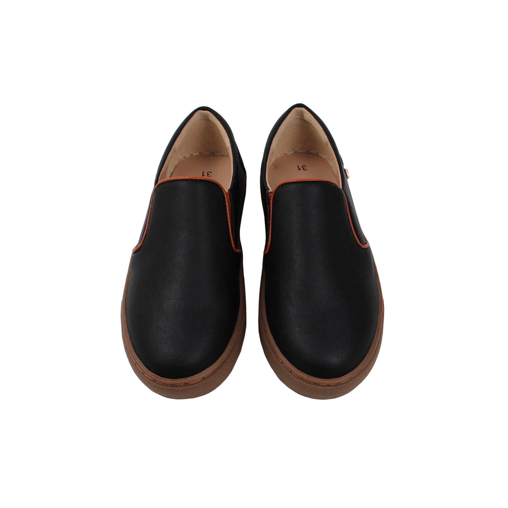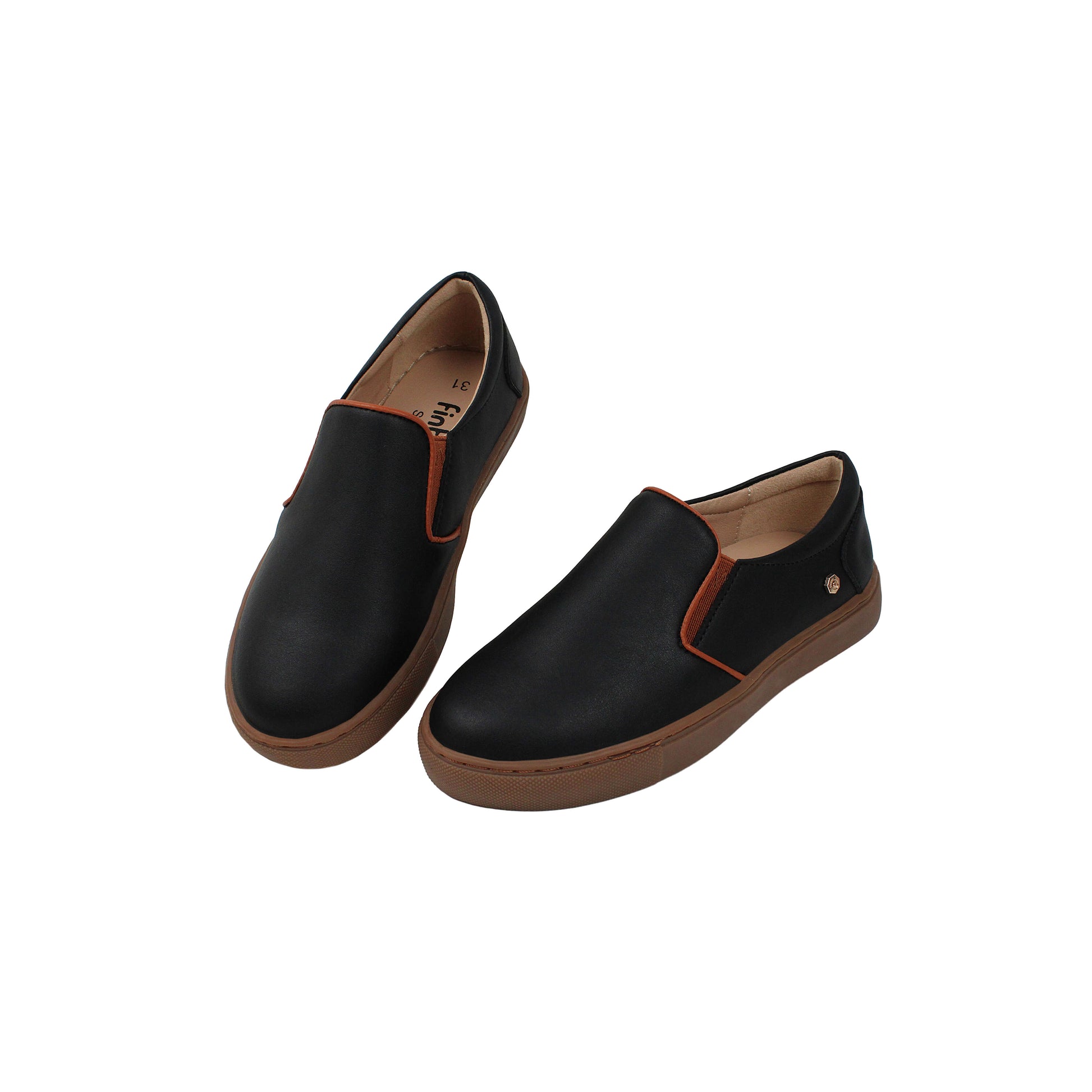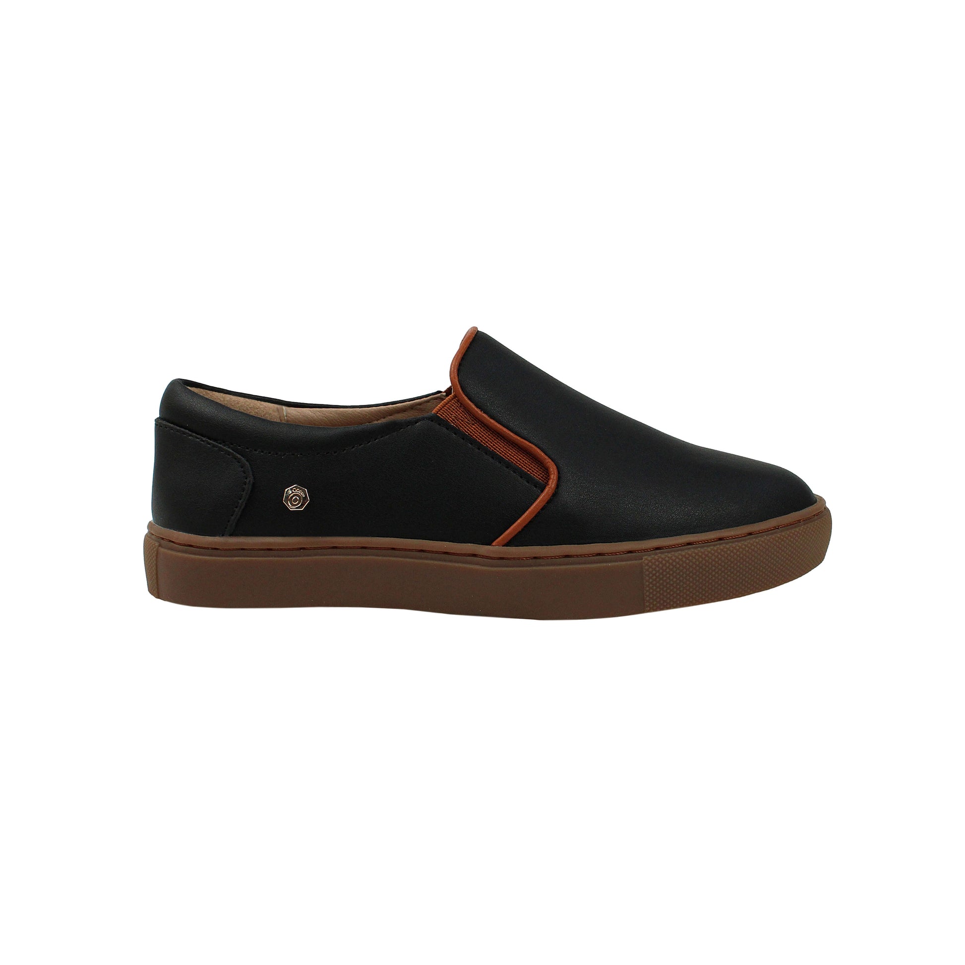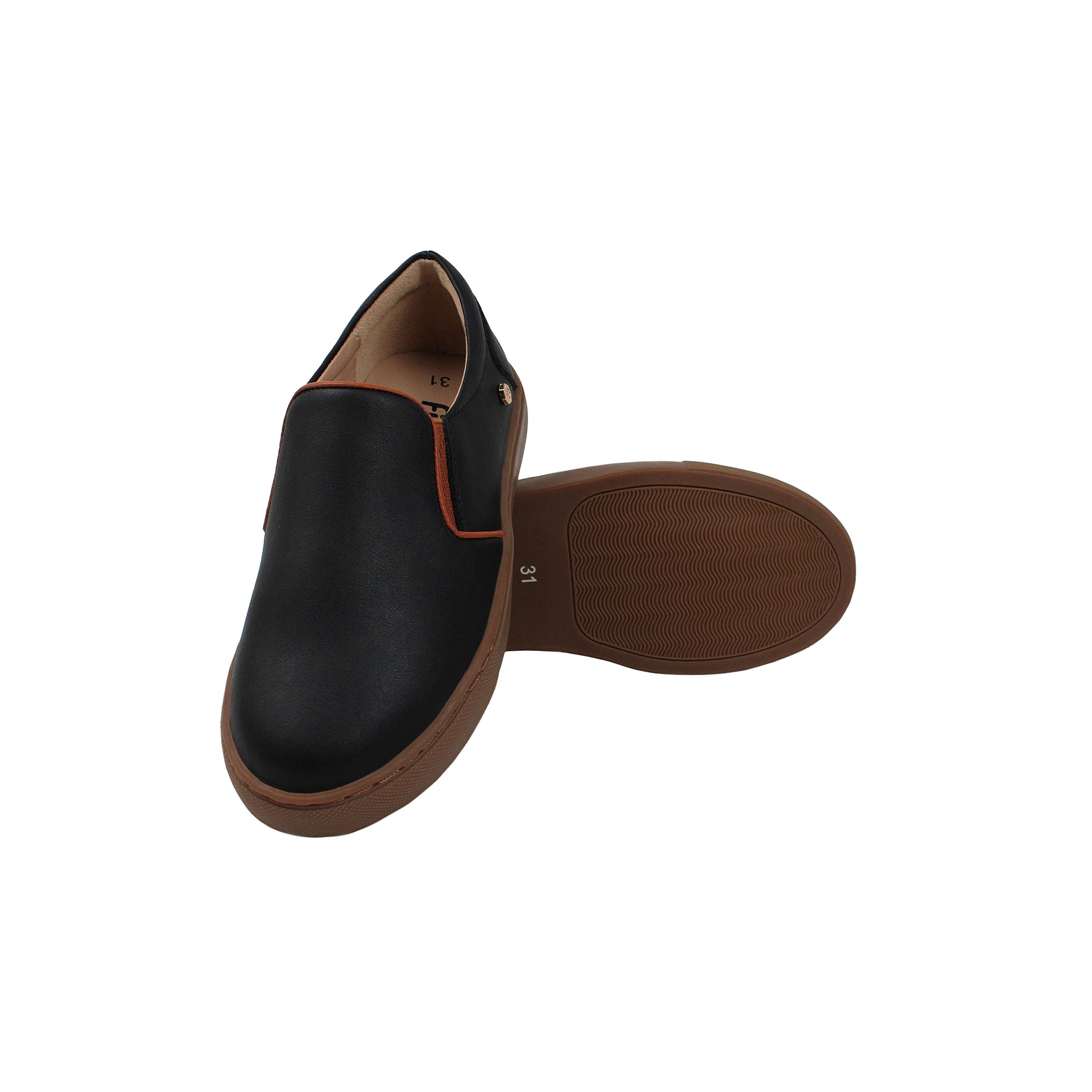 Black Leather Sneaker with Brown Sole