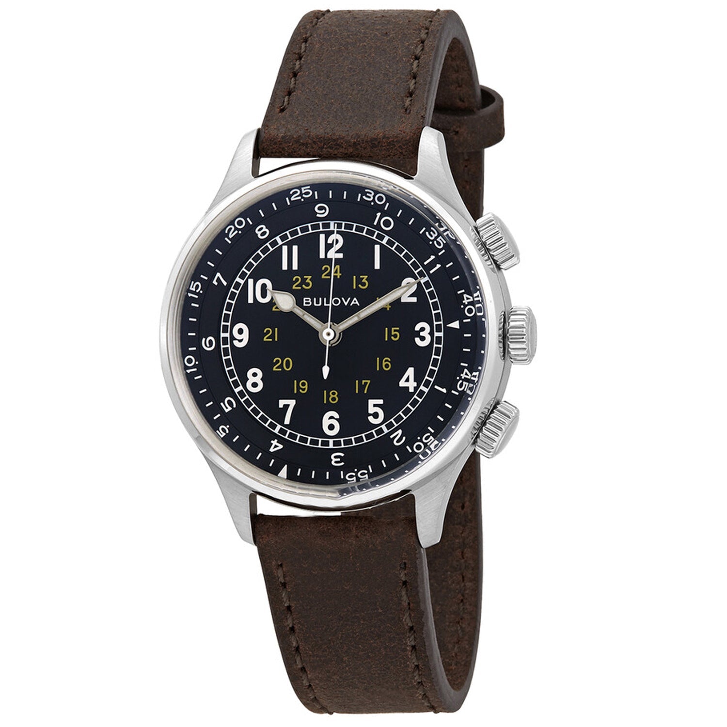 Stainless steel case, Leather strap, Black dial, Quartz movement, Scratch resistant mineral, Water resistant up to 3 ATM - 30 meters - 100 feet