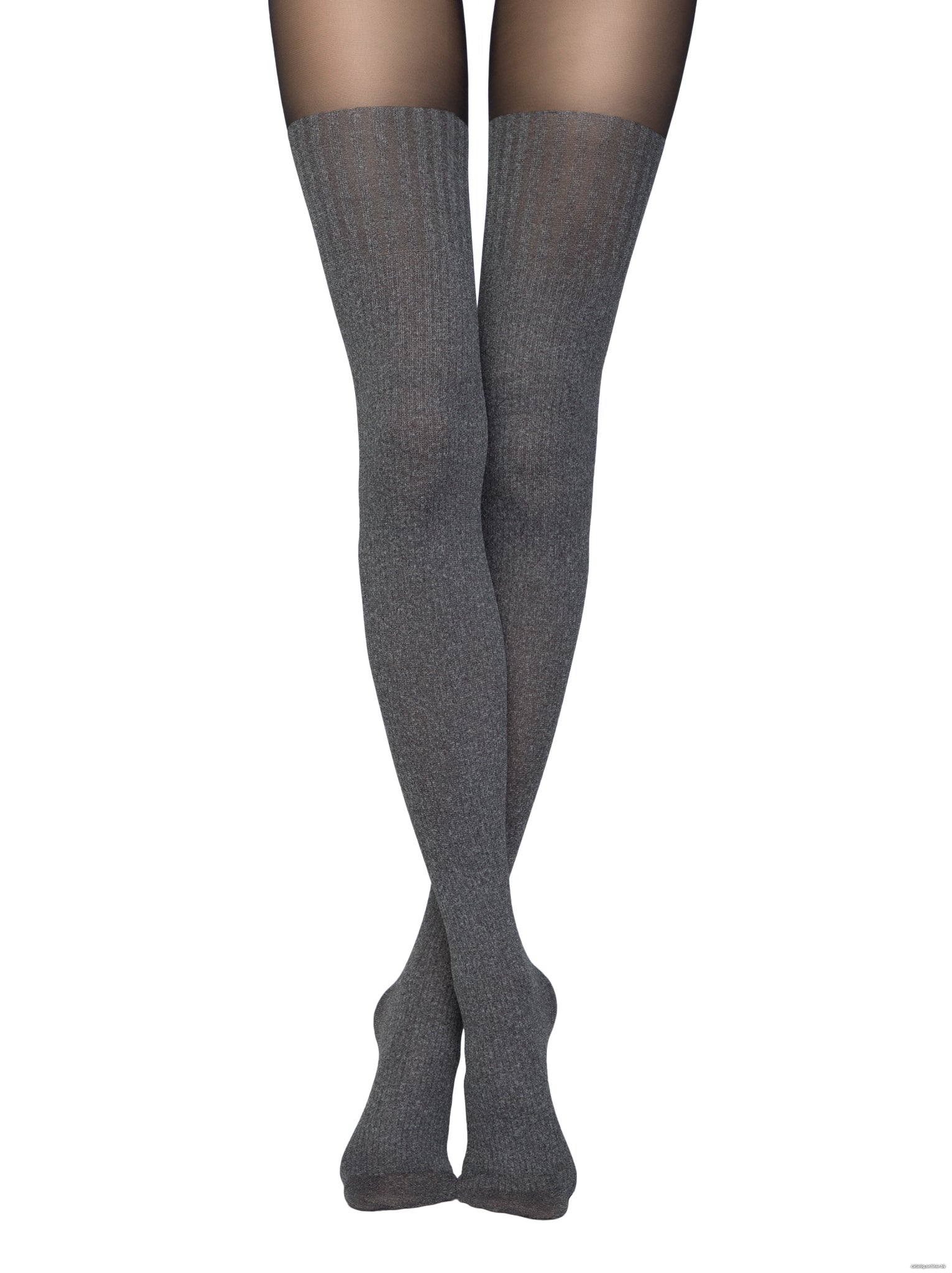 Dense elastic fancy tights crafted with 60 Den fabric that beautifully mimics the textured appearance of mélange golfs. The innovative design features a sheer 20 Den transparent section from the top to the waist, creating an elegant contrast while maintaining comfort. The T-shaped waistband provides secure, all-day support without rolling or shifting, while the flat seam construction ensures a smooth silhouette under clothing. A breathable cotton gusset offers essential moisture management and comfort throughout wear. Perfect for those seeking sophisticated style with practical functionality, these tights deliver the visual interest of patterned hosiery with the reliability of premium construction.
