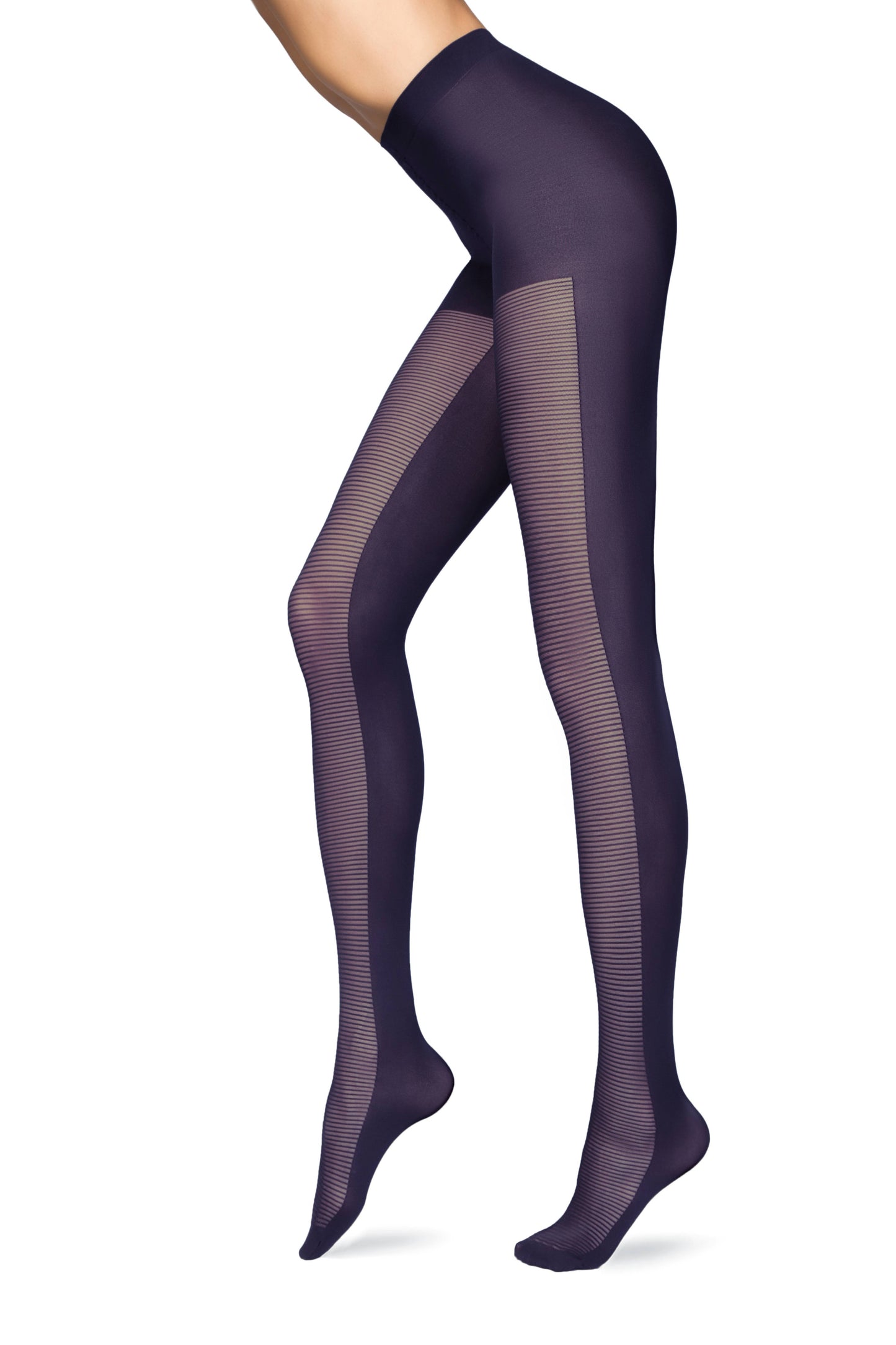 Conte Alliance 60 Den Fantasy Opaque Women's Tights feature a distinctive pattern of horizontal stripes on the front, adding a stylish touch to your outfit. Crafted from a blend of polyamide and elastane, these tights offer consistent opacity and a smooth texture throughout. The classic waist fit ensures comfort and a secure hold, complemented by a 3 cm wide elastic waistband that prevents slipping. Designed with a flat seam and a cotton gusset, these tights provide enhanced durability and breathability, making them ideal for all-day wear. Perfect for adding elegance and sophistication to any wardrobe.
