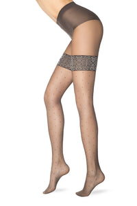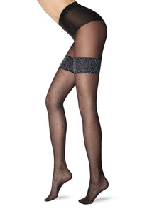 Conte Passage 20 Den tights deliver sophisticated elegance with their delicate 20 denier construction, offering a sheer, barely-there aesthetic that complements any ensemble. The reinforced "shorts" torso provides essential support and comfort throughout the day, while the innovative stocking imitation design features a charming dot pattern distributed across the entire leg—creating the appearance of classic stockings without the need for garters or clips. Crafted with precision, these tights showcase a flat seam construction that ensures a seamless silhouette under fitted clothing, while the mélange elastic maintains shape and durability. The cotton gusset prioritizes comfort and breathability, making them suitable for extended wear. The Fantasy Polka Dots pattern adds a playful yet refined touch, allowing you to express personal style while maintaining a polished appearance. Ideal for those seeking the timeless appeal of stockings with the convenience and comfort of modern hosiery.