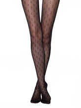 These 20 Den thin elastic fantasy tights feature a distinctive polka dot design with two rows of triple dots. They offer a classic waist fit and maintain uniform thickness throughout, without shorts. Designed with a flat seam and a cotton gusset for comfort, the tights also include a 3 cm wide elastic waistband and a transparent reinforced toe for durability.