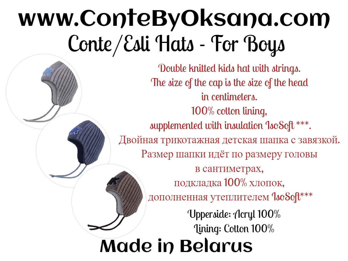 Conte/Esli Double knitted kids hat with strings, supplemented with insulation IsoSoft - For Boys (17С-153СП)