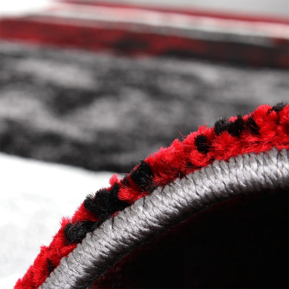 Geometric Designer Rug with Contour Cut - Gey Red