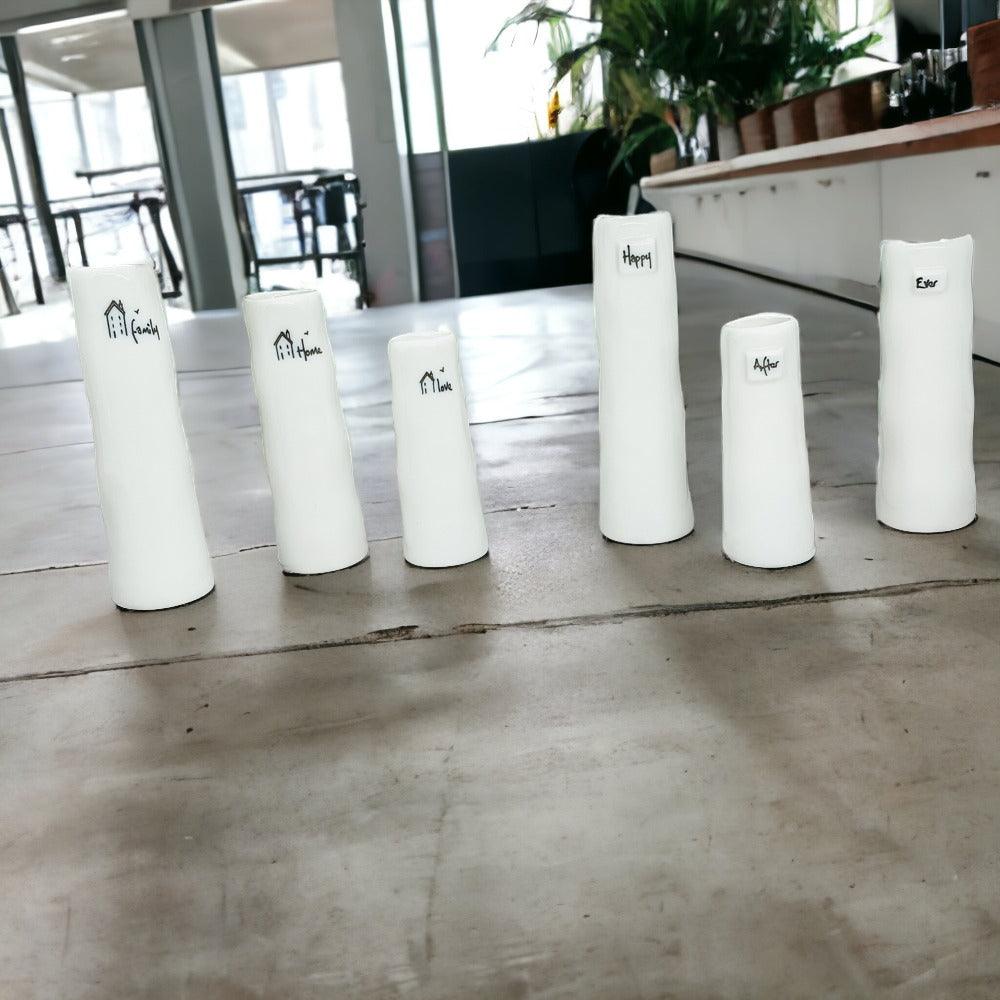 These are a super cute and unique gift set and also make a great addition to any home! Unique vases to use for a single flower, faux flowers or just simplistic shelf decor in the home or office!