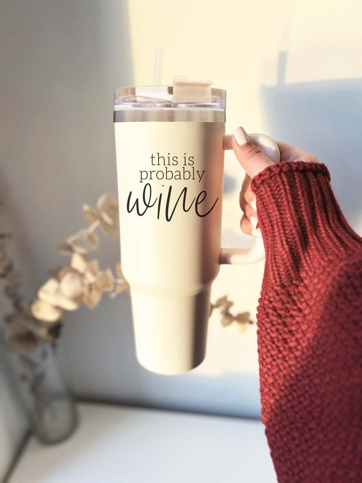 Indulge in the playful charm of the "Probably Wine" 40oz tumbler. Because life's too short not to sip from a cup that makes you smile and might just make others wonder what's in there!