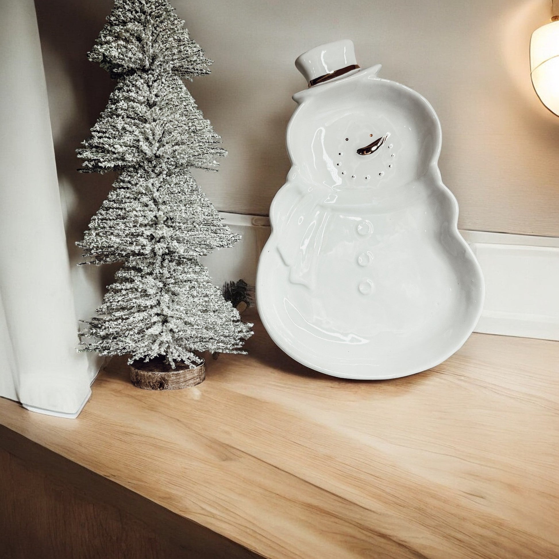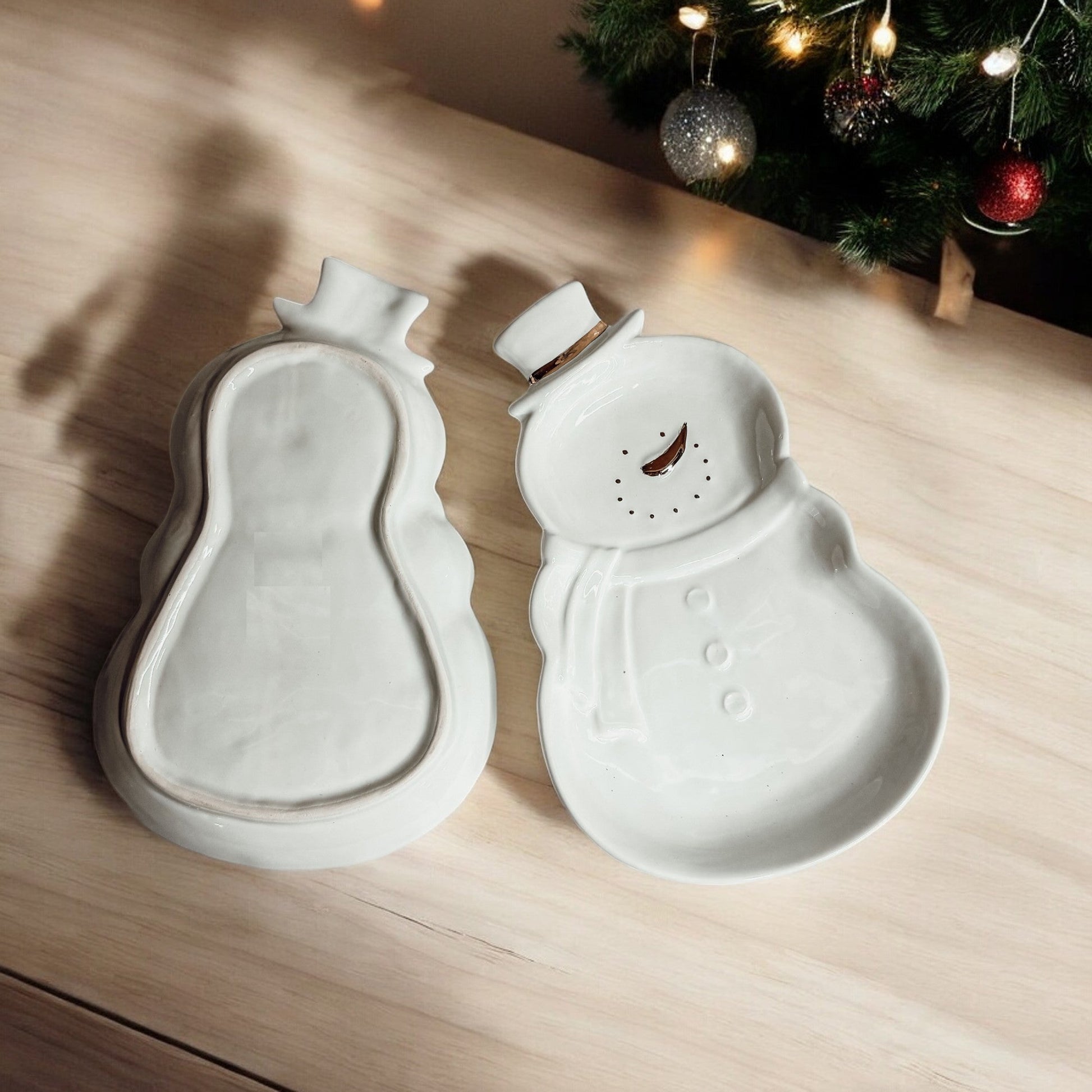 Say goodbye to boring snack time and serve up your treats with a frosty flair! Our snowman serving dish is here to bring the holiday cheer and a side of class (thanks to those fancy metallic gold accents). Whether you're dishing out cookies, crackers, or that last-minute charcuterie board you totally didn’t throw together in a panic, this dolomite dish has got you covered. At 6" by 9 1/2", it’s just the right size for your favorite snacks, without letting your snowman get snowed under by too many treats. Just don’t toss him in the microwave—he might melt!