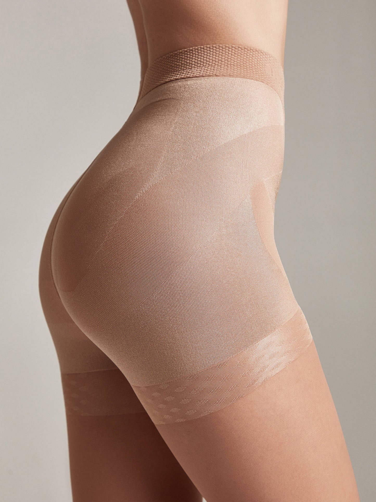 The Conte X-Press Soft 40 Den tights combine advanced shaping technology with comfort, offering five modeling belts that target key areas. Integrated shorts smooth the hips, slim the waist, and flatten the stomach, while an elastic band gently lifts the gluteal muscles to enhance overall body contour. These tights are crafted from a silky, soft fabric ideal for sensitive skin, and each pair is lightly infused with a subtle fragrance for a refined wearing experience. Reinforced toes add durability, and extra-large sizes include a larger gusset to ensure perfect fit and comfort. Perfect for those seeking effective shaping with gentle care.