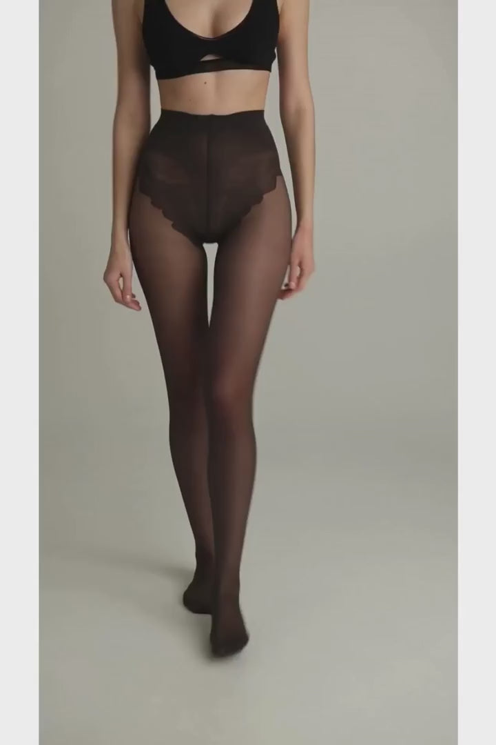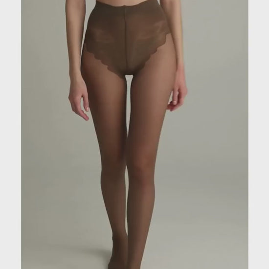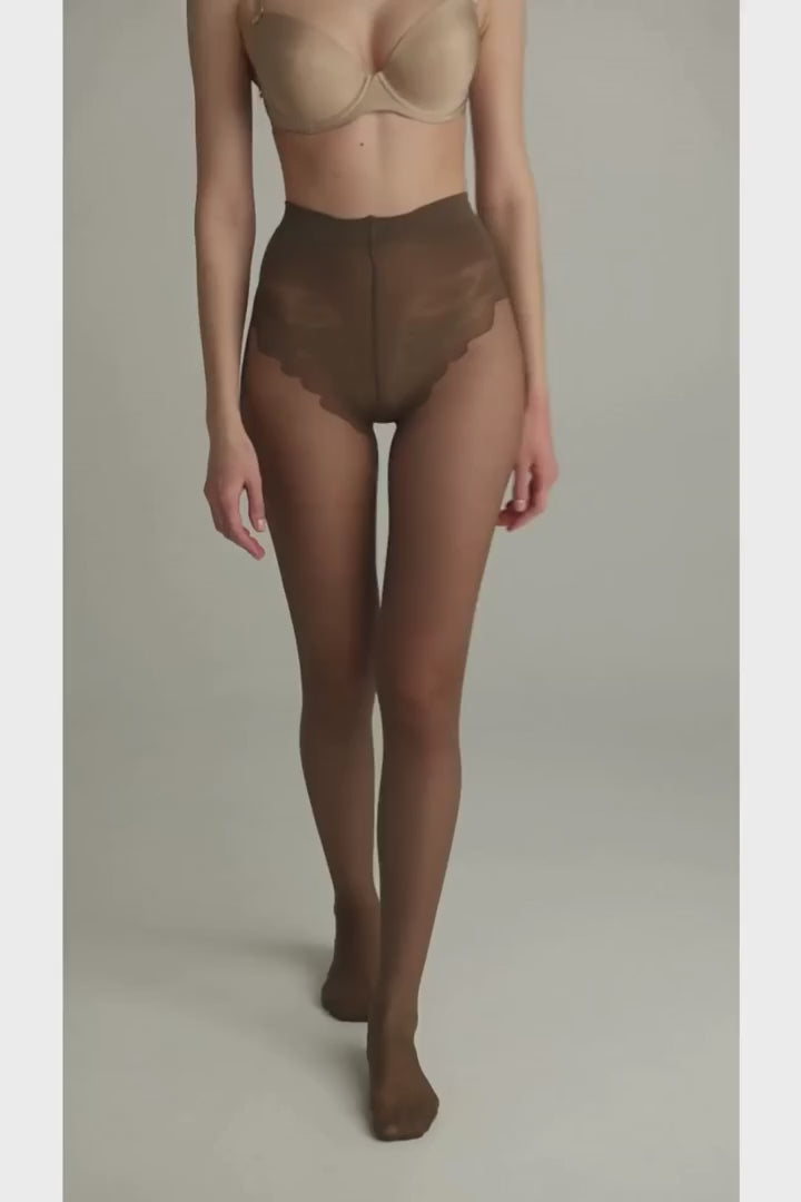 Ці щільні еластичні колготки мають шовковисту текстуру, доповнені мереживними трусиками та посиленим носком, а також бавовняною ластовицею для комфорту. Збагачені вітаміном Е, вони ніжні для чутливої шкіри. Виготовлені з поліаміду та еластану з нитками лайкри, спеціальні волокна забезпечують гладкість, м'якість, яка є одночасно ніжною та приємною. Крім того, колготки мають тонкий аромат для додаткової свіжості.