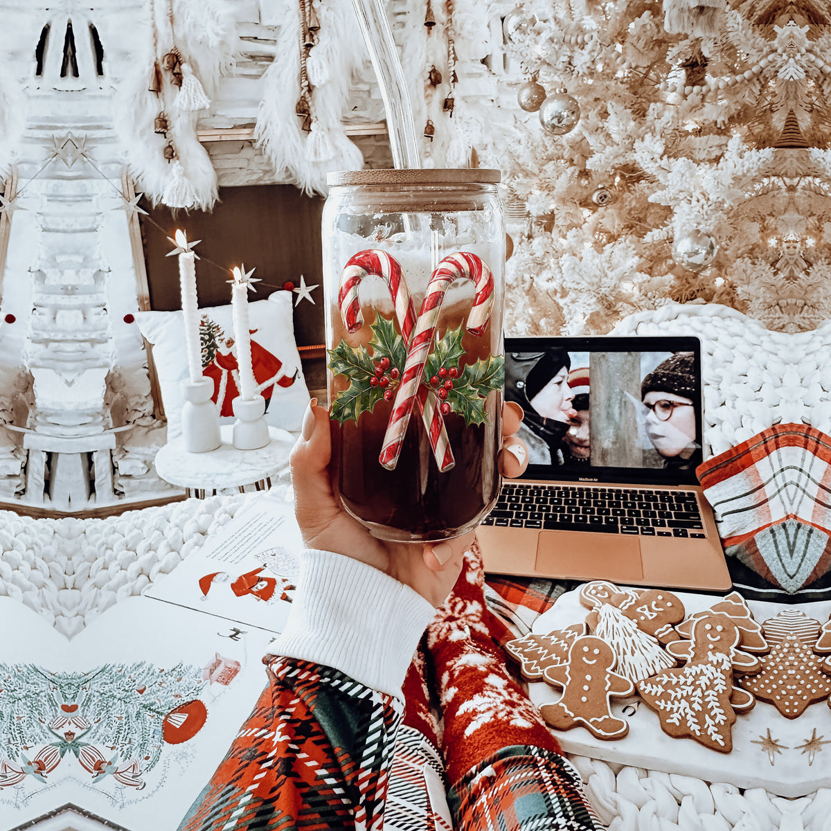✨ 17oz glass tumbler with candy canes that are almost too cute to drink from