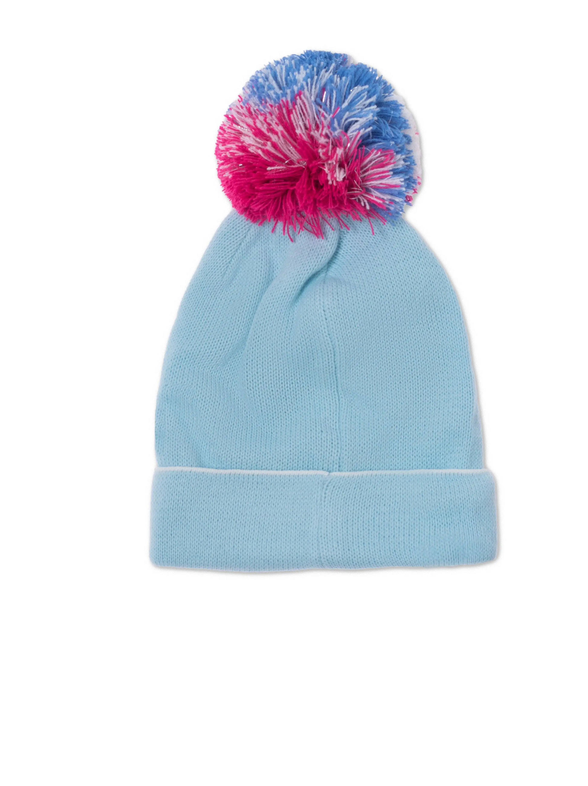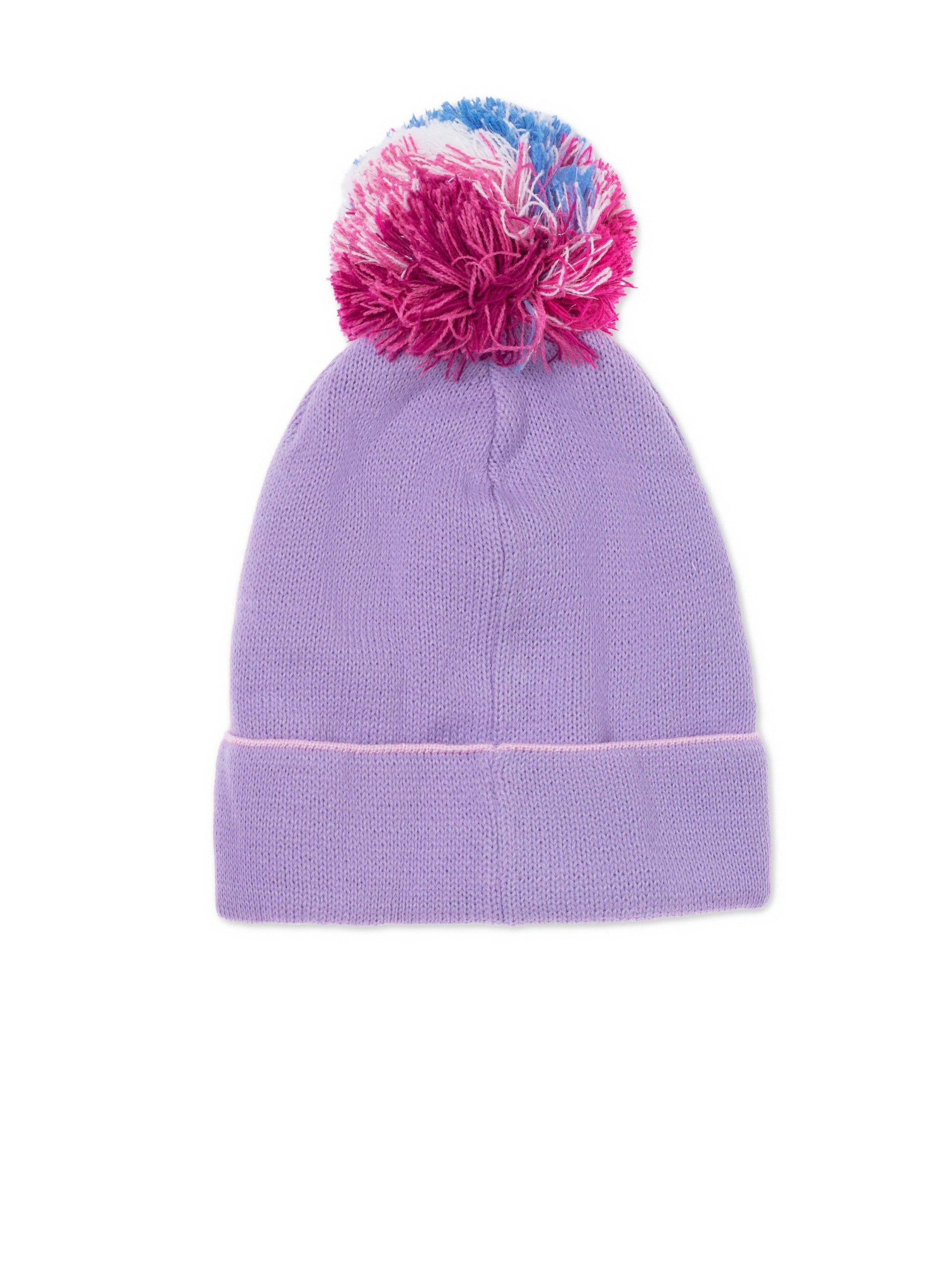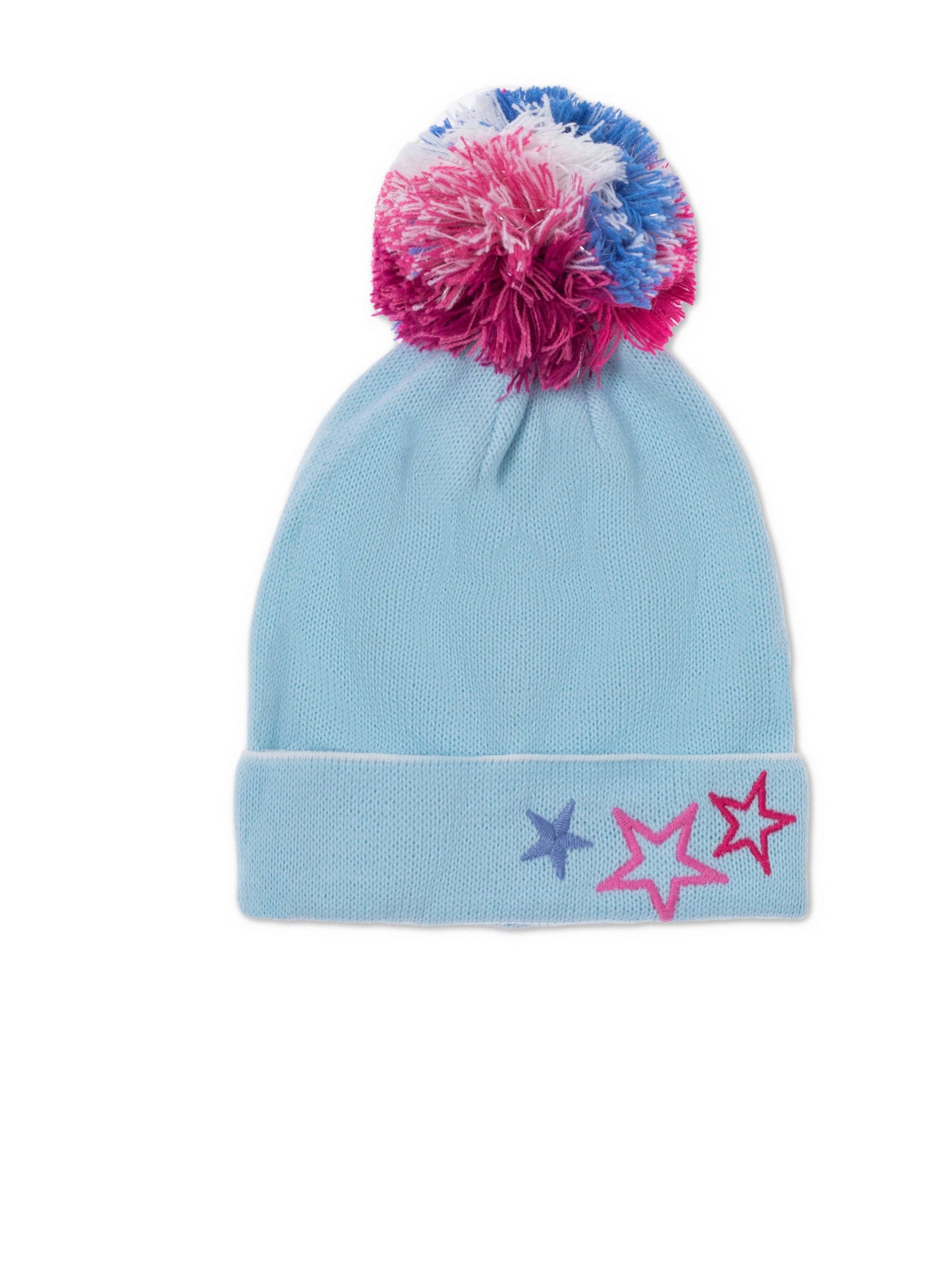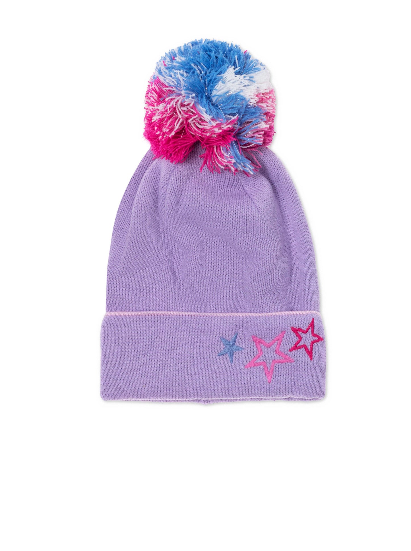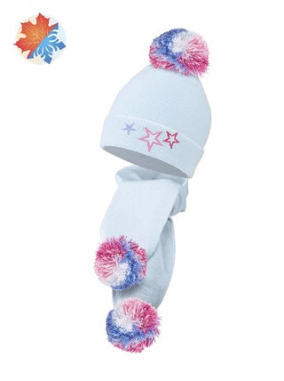 Комплект із шапки та шарфа з вишитими зірочками та яскравими помпонами. Шапочка з відворотом, шарф розміром 13х115см. (5x45 дюймів)
